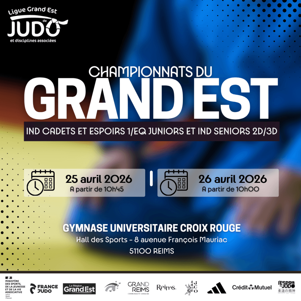 Les 25 et 26 avril 2026, le Gymnase Universitaire Croix Rouge sera le théâtre de compétitions palpitantes, réunissant les meilleurs judokas de la région. C’est l’occasion de venir encourager nos #JudokasDelEst et de vibrer au rythme des combats !